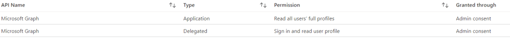 I already have the Azure AD permissions in place for the application to read user profiles in the tenant, but I’ve provided a sample below.
