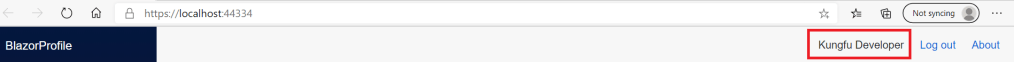 One of the simplest ways to update the display name is to update the LoginDisplay.razor component directly. Information in the security context, within an authorised view, is readily accessible. I make a simple change to pull out the “name” claim from the identity by injecting the AuthenticationStateProvider in the code sample below, then reference the value in @UserName.