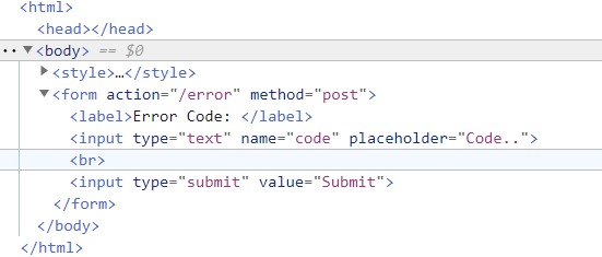 Since the above form accepts an error action with a code, as per the HTML markup: